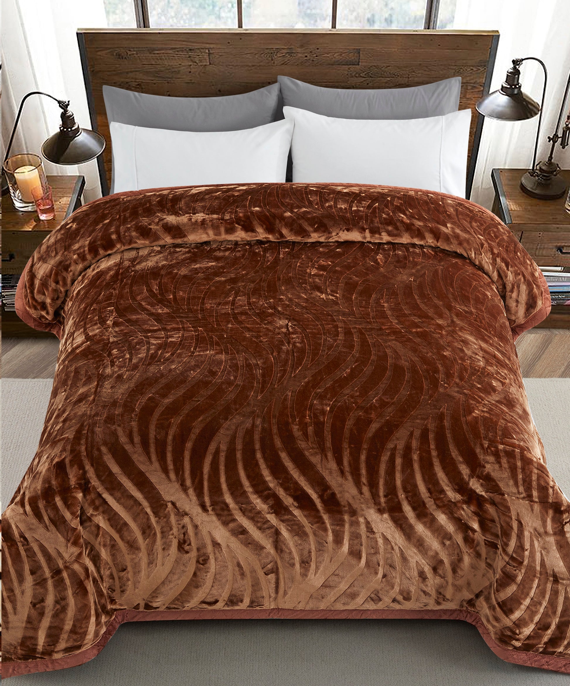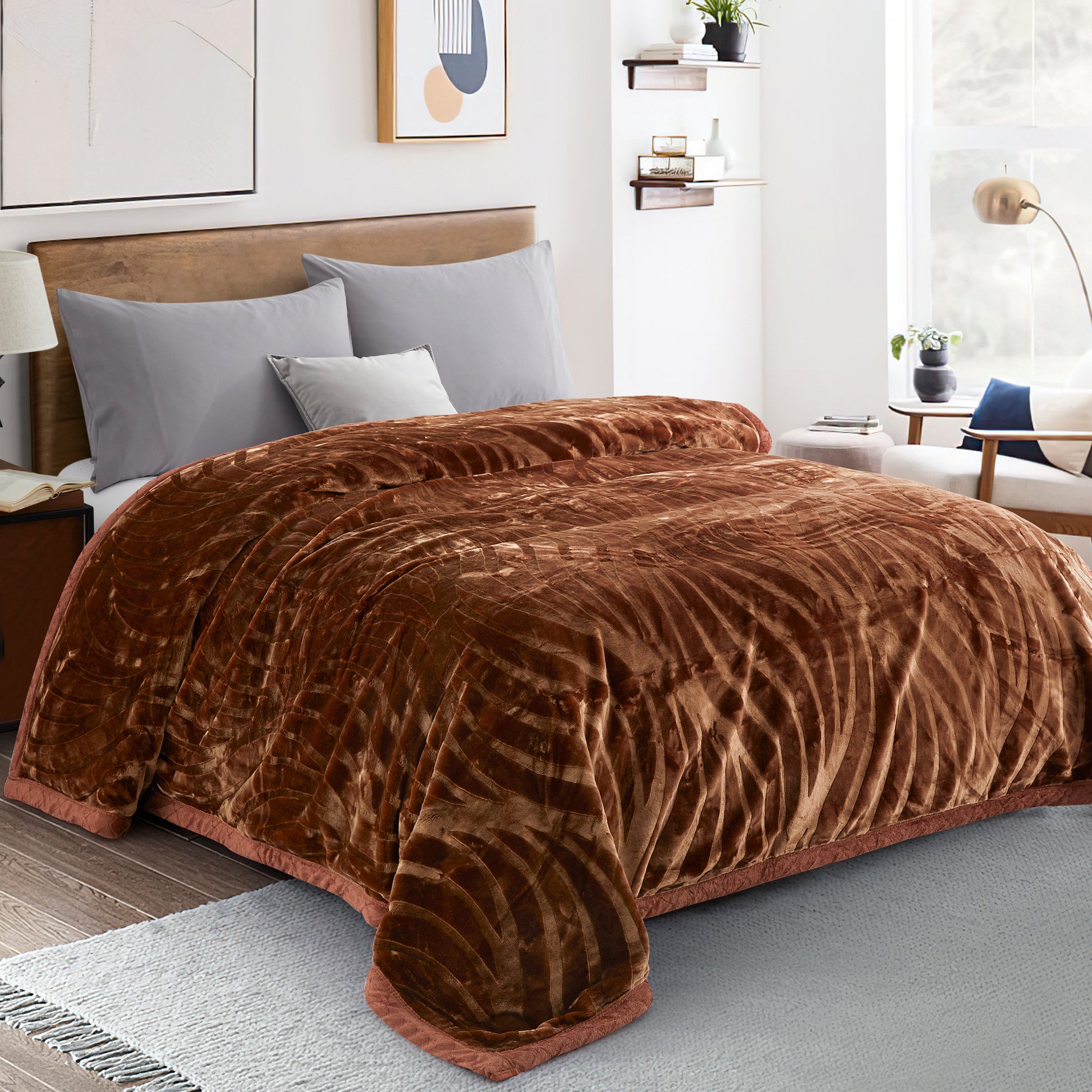 Size and Material - 86 x 94 Inch (220 x 239 cm). The Blanket is 8 LBS. Made by Premium 100% High Quality Microfiber Polyester. 300 GSM Provides You a Good Touch Feeling. It can Be Used for Bath Robe