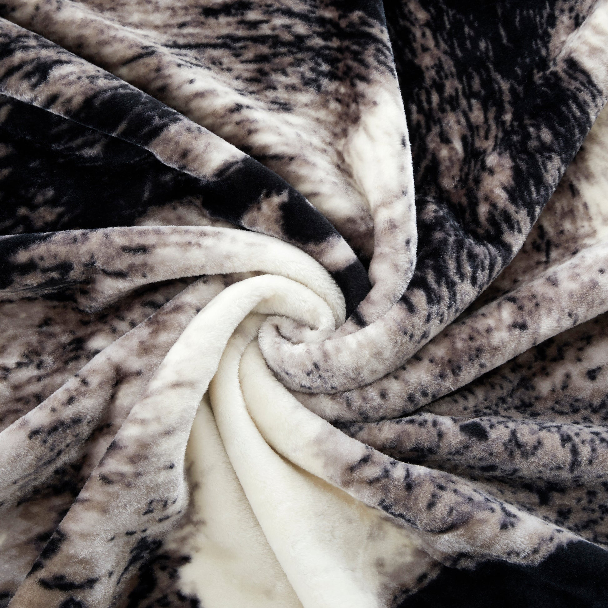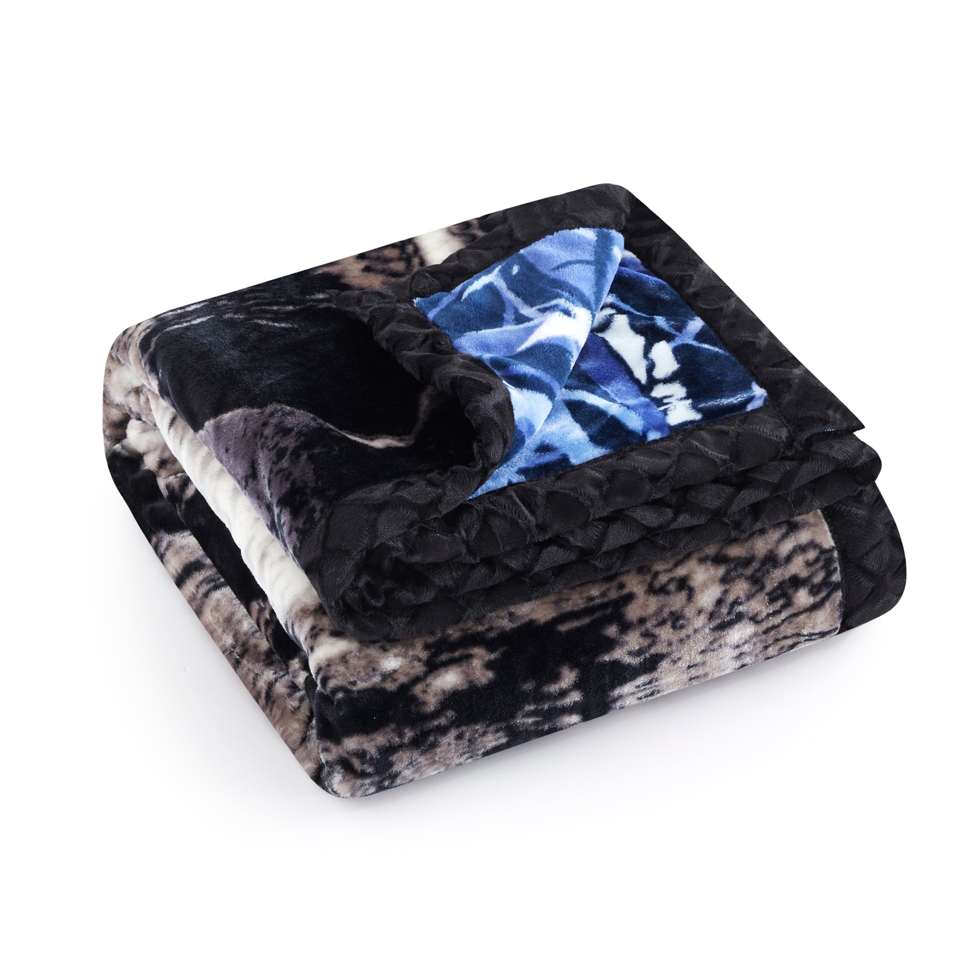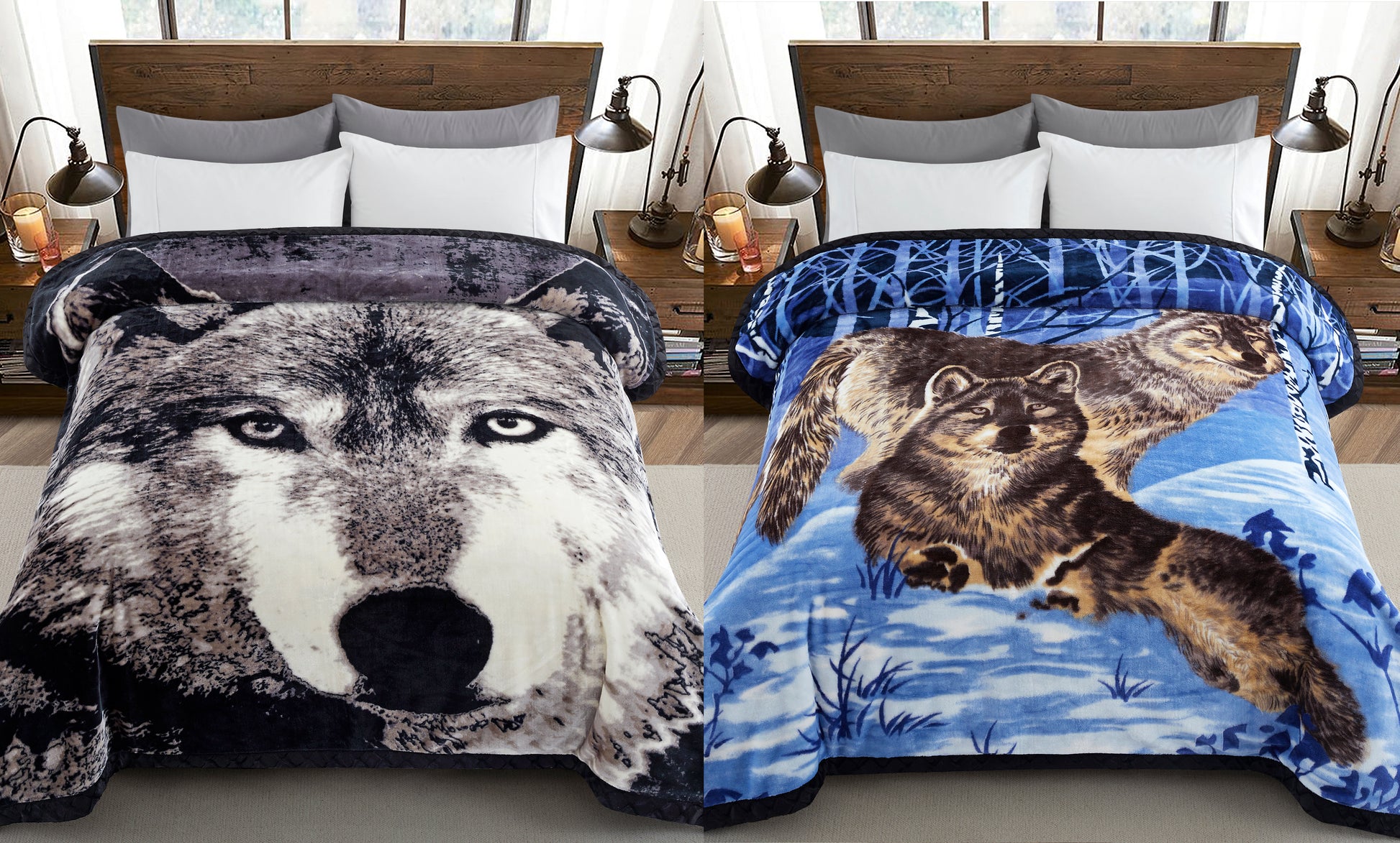 Printed Reversible Woven Fluffy Plush Soft Warm Korean Style 2 Ply Flannel Fleece Throw Animal Mink Blanket, 78" x 86" Wolf