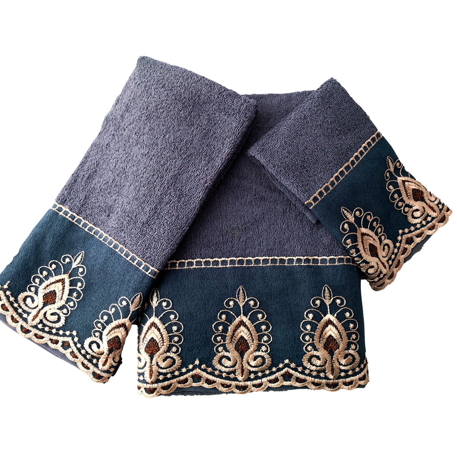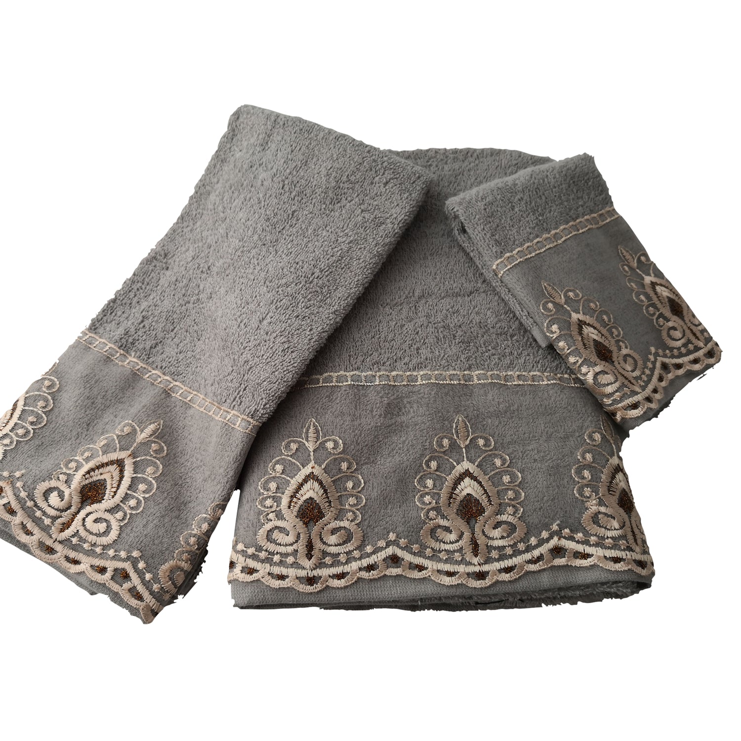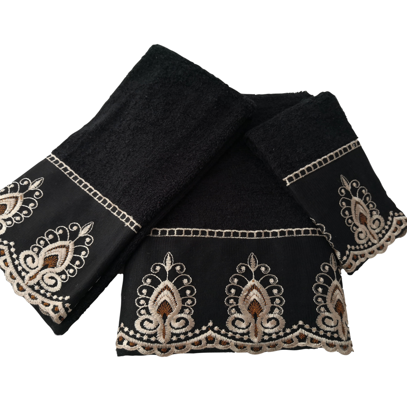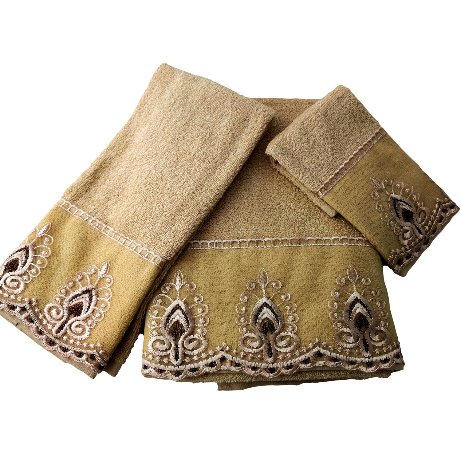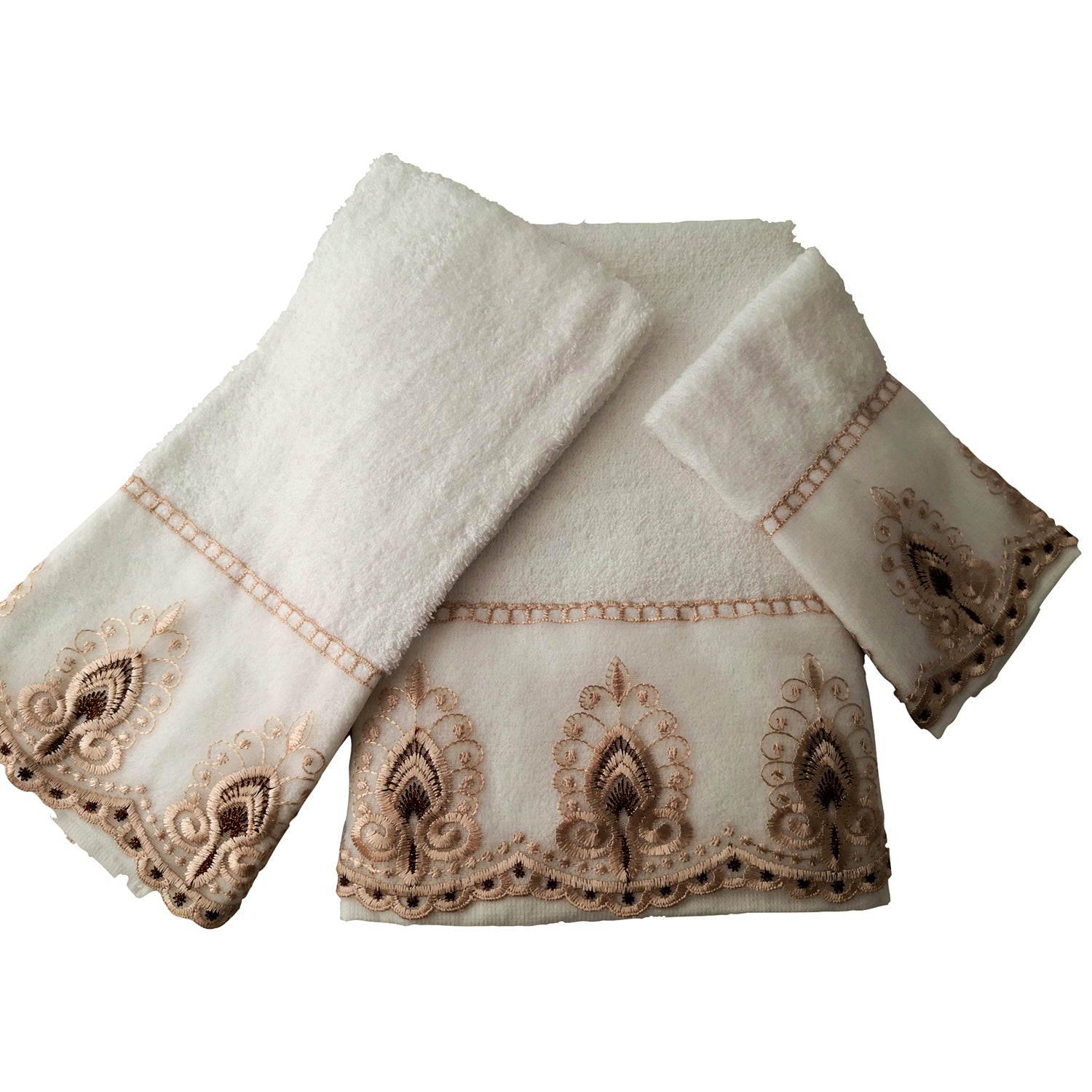 Premium Luxury Decor Soft 100% Cotton Sheer Lace Bathroom Modern 3 Piece Towel Set