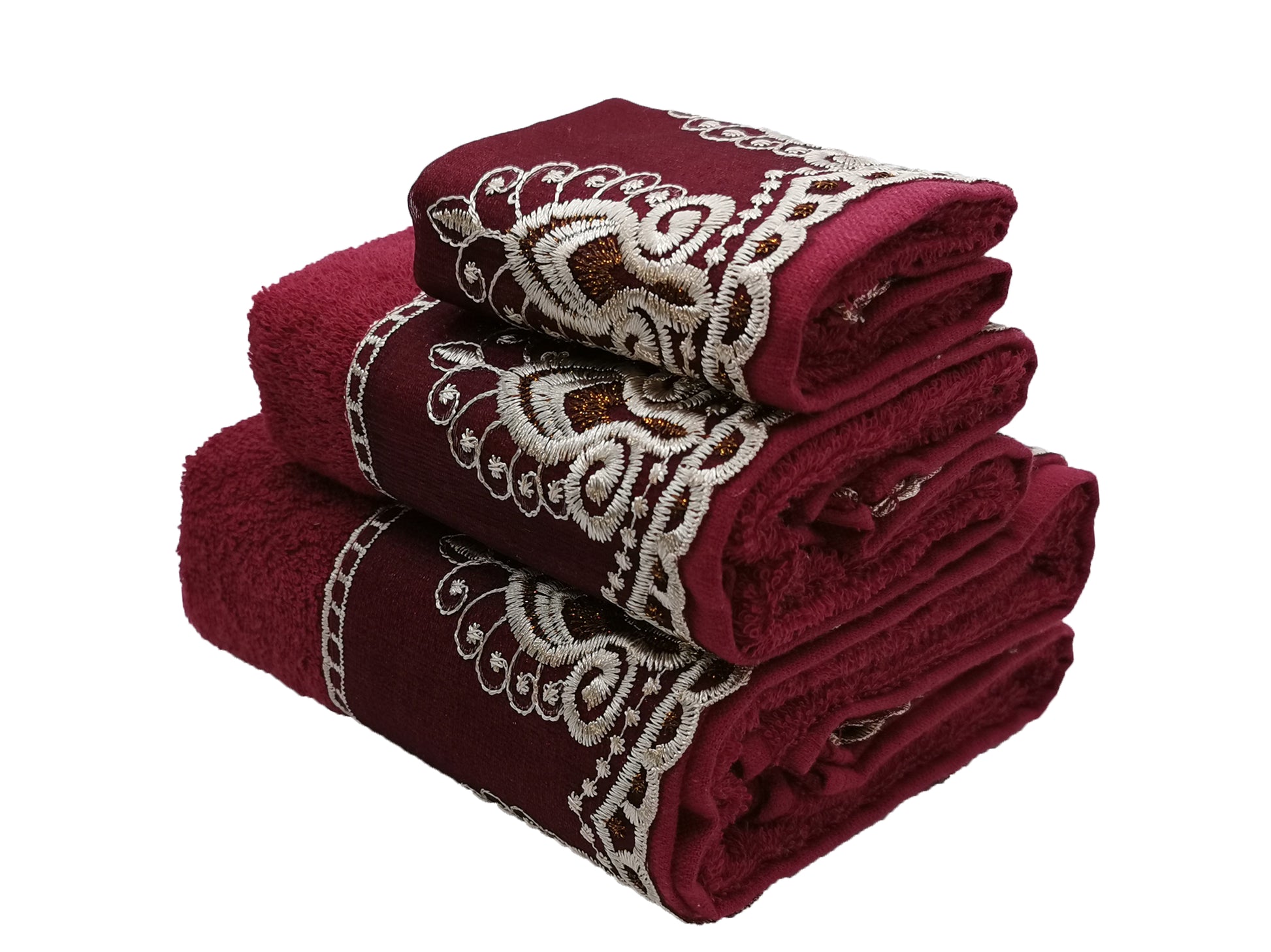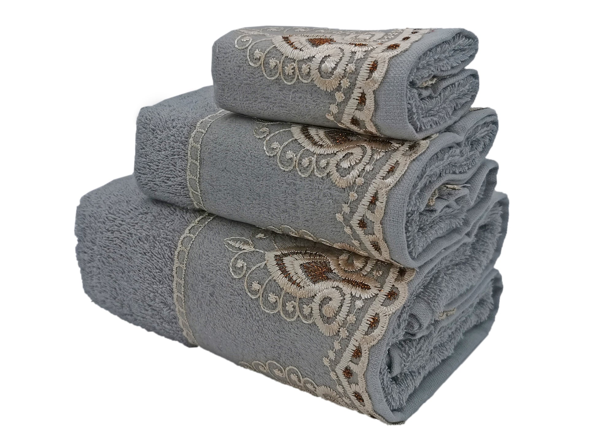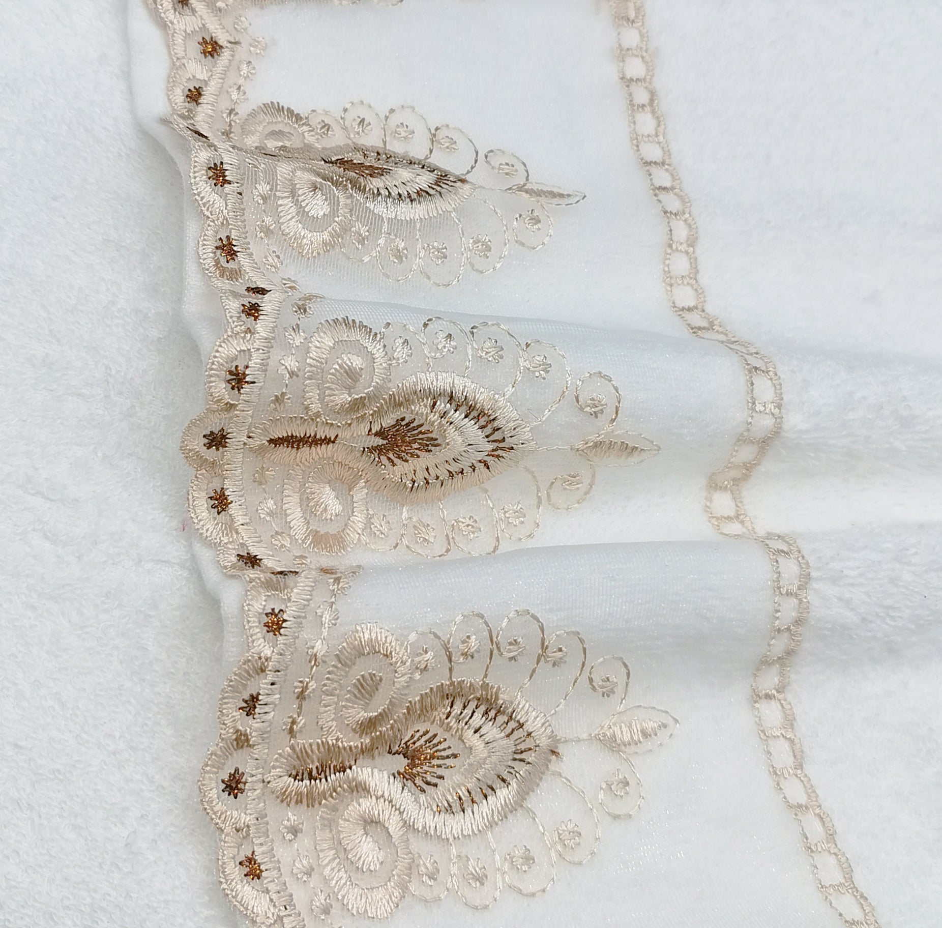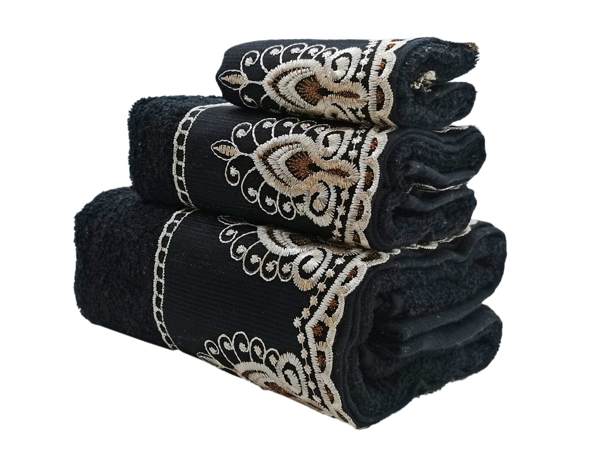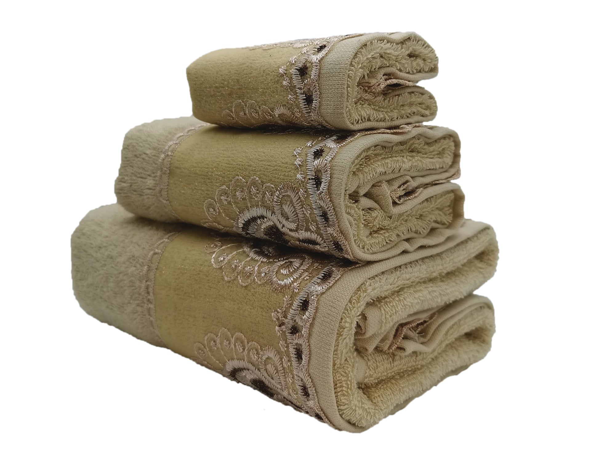 Premium Luxury Decor Soft 100% Cotton Sheer Lace Bathroom Modern 3 Piece Towel Set