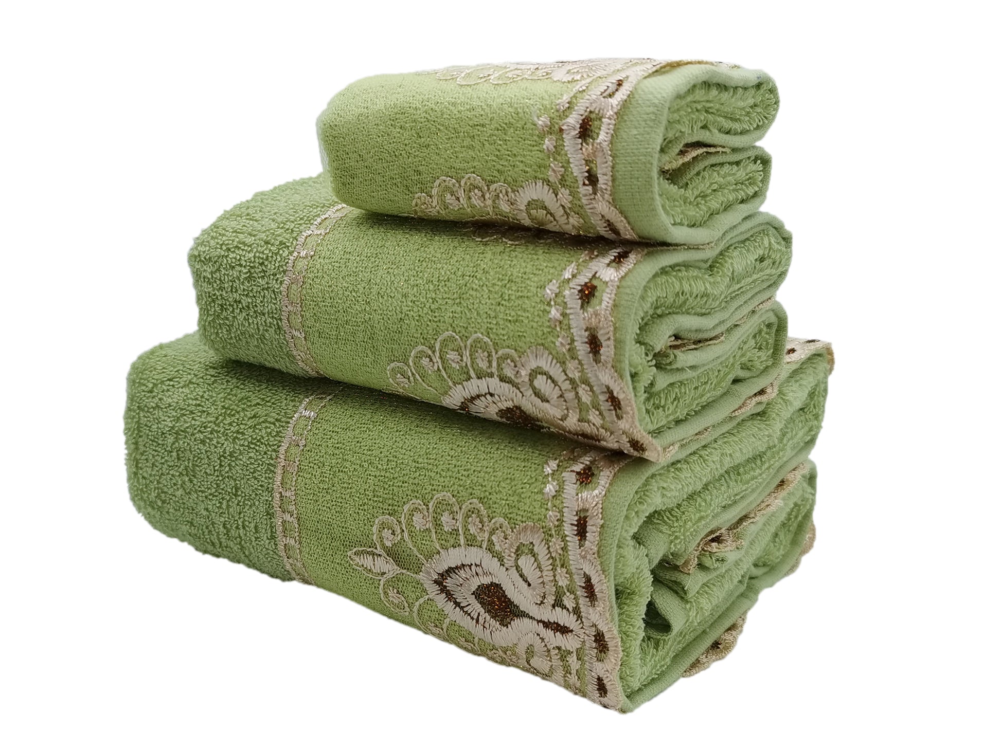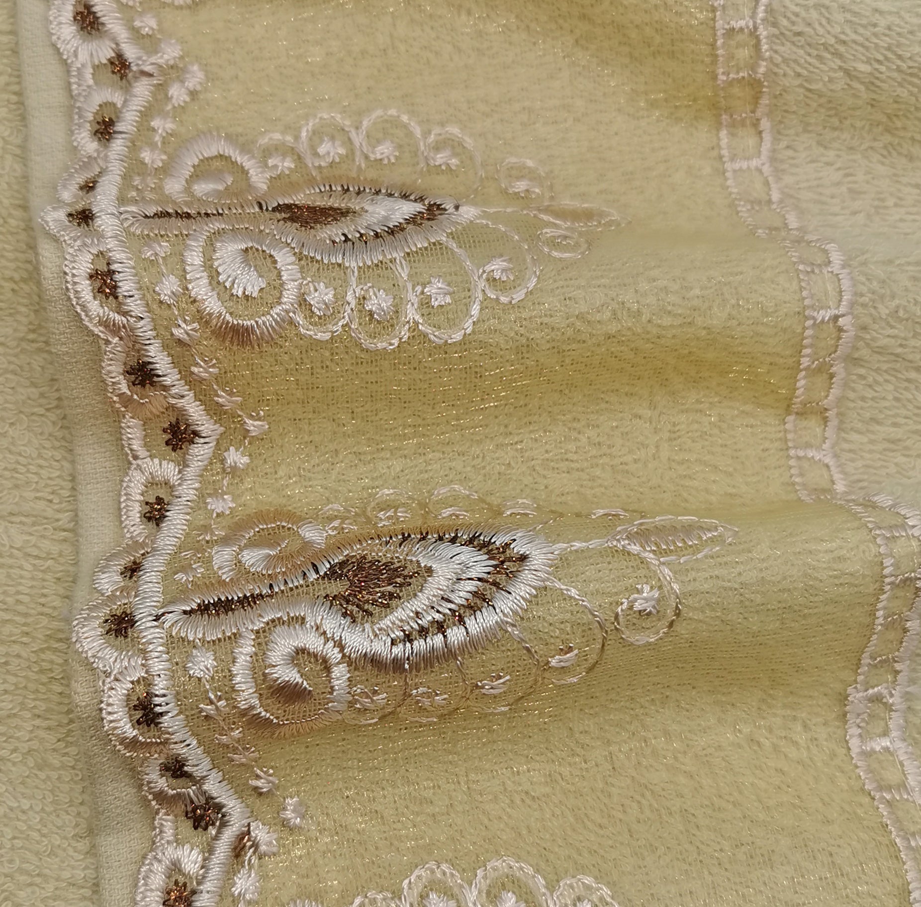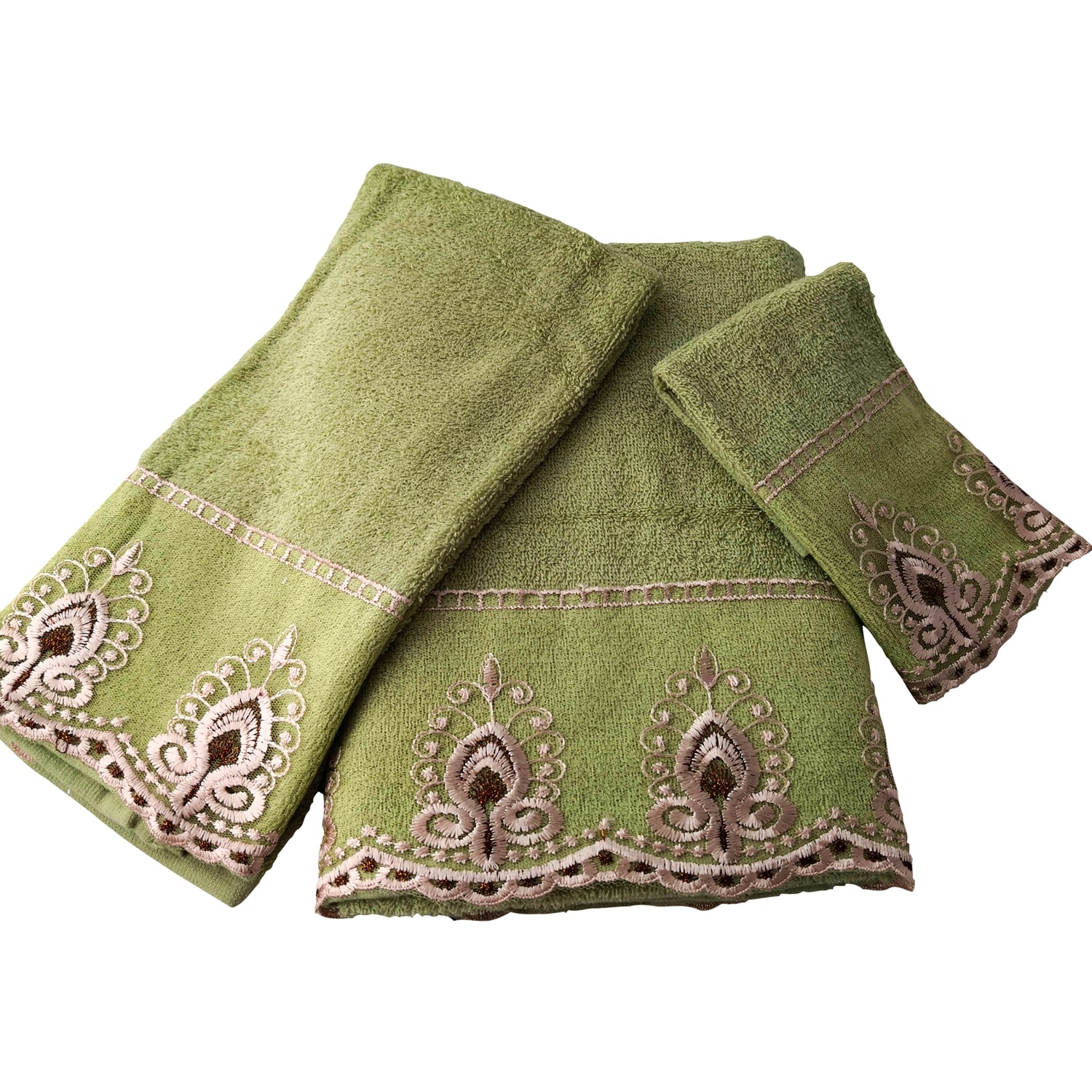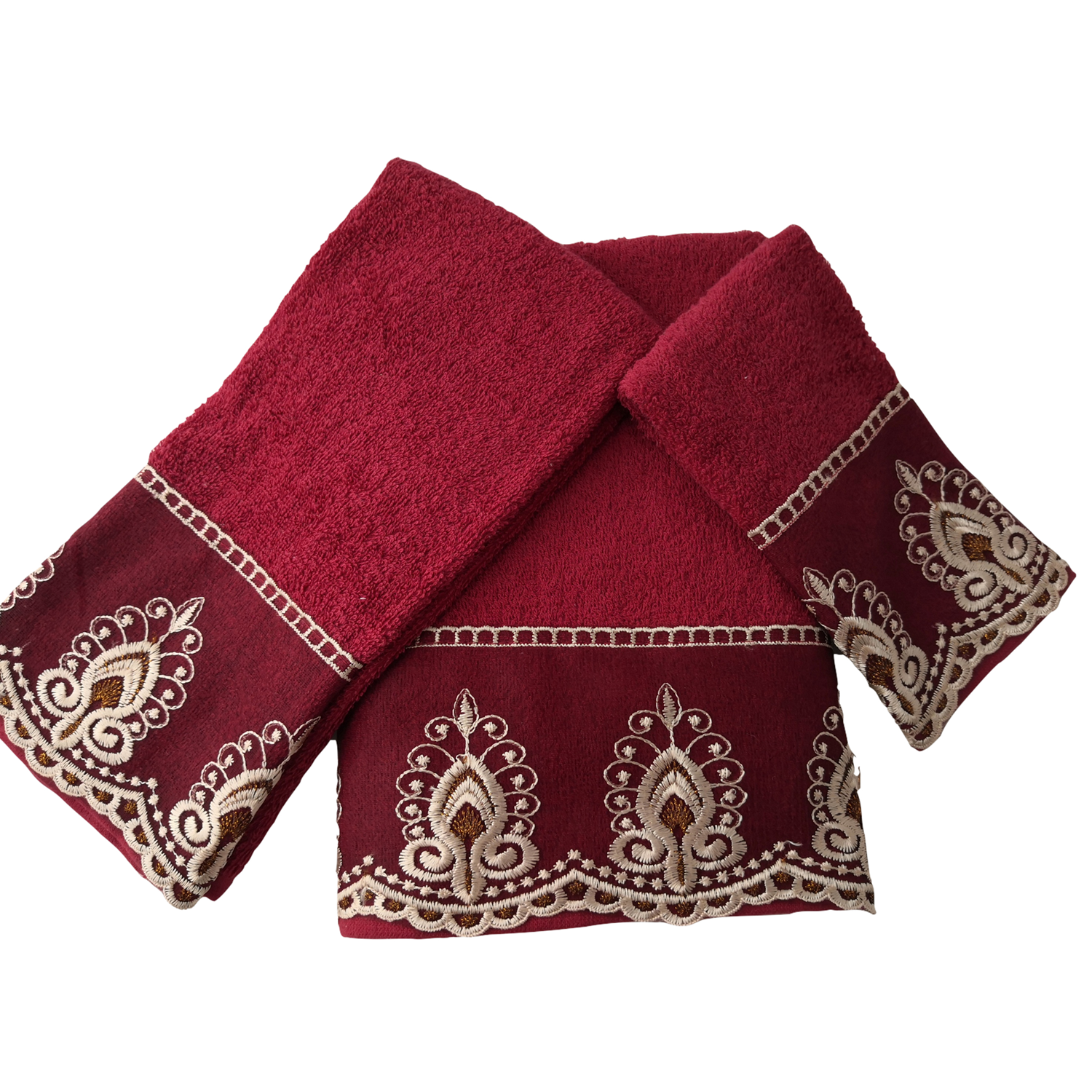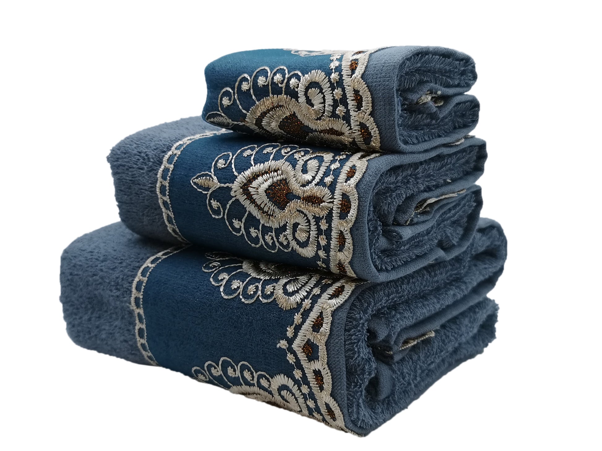 Premium Luxury Decor Soft 100% Cotton Sheer Lace Bathroom Modern 3 Piece Towel Set