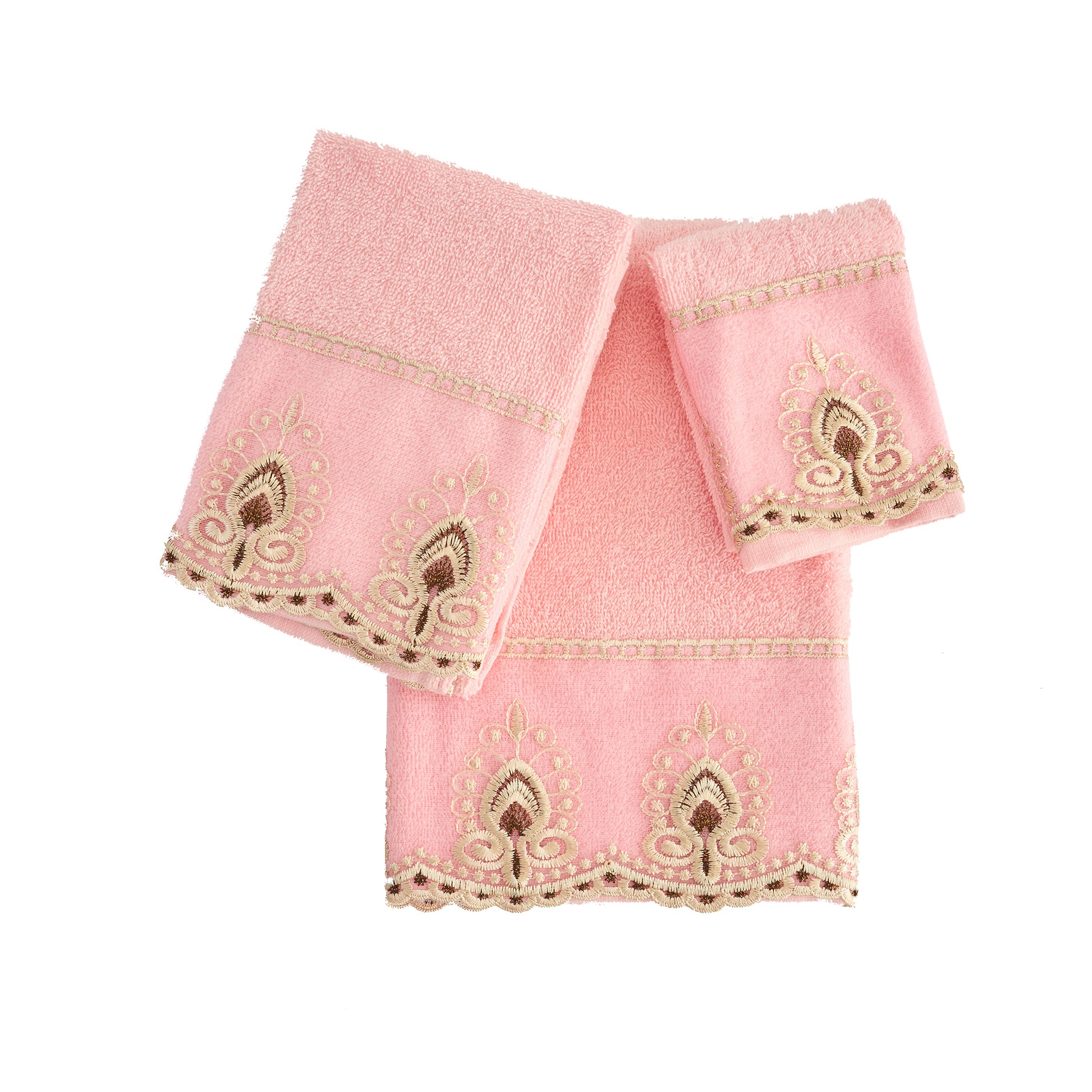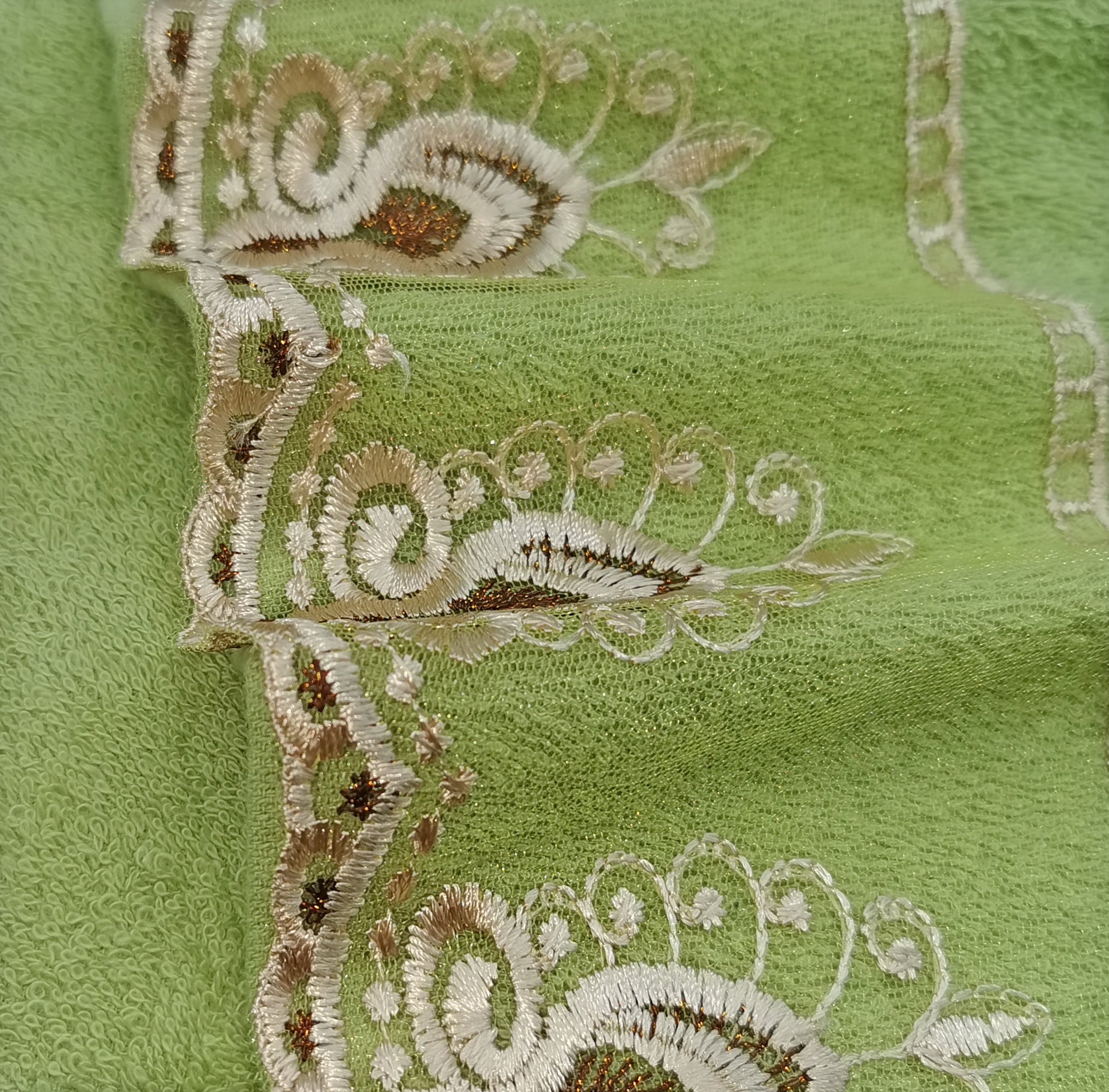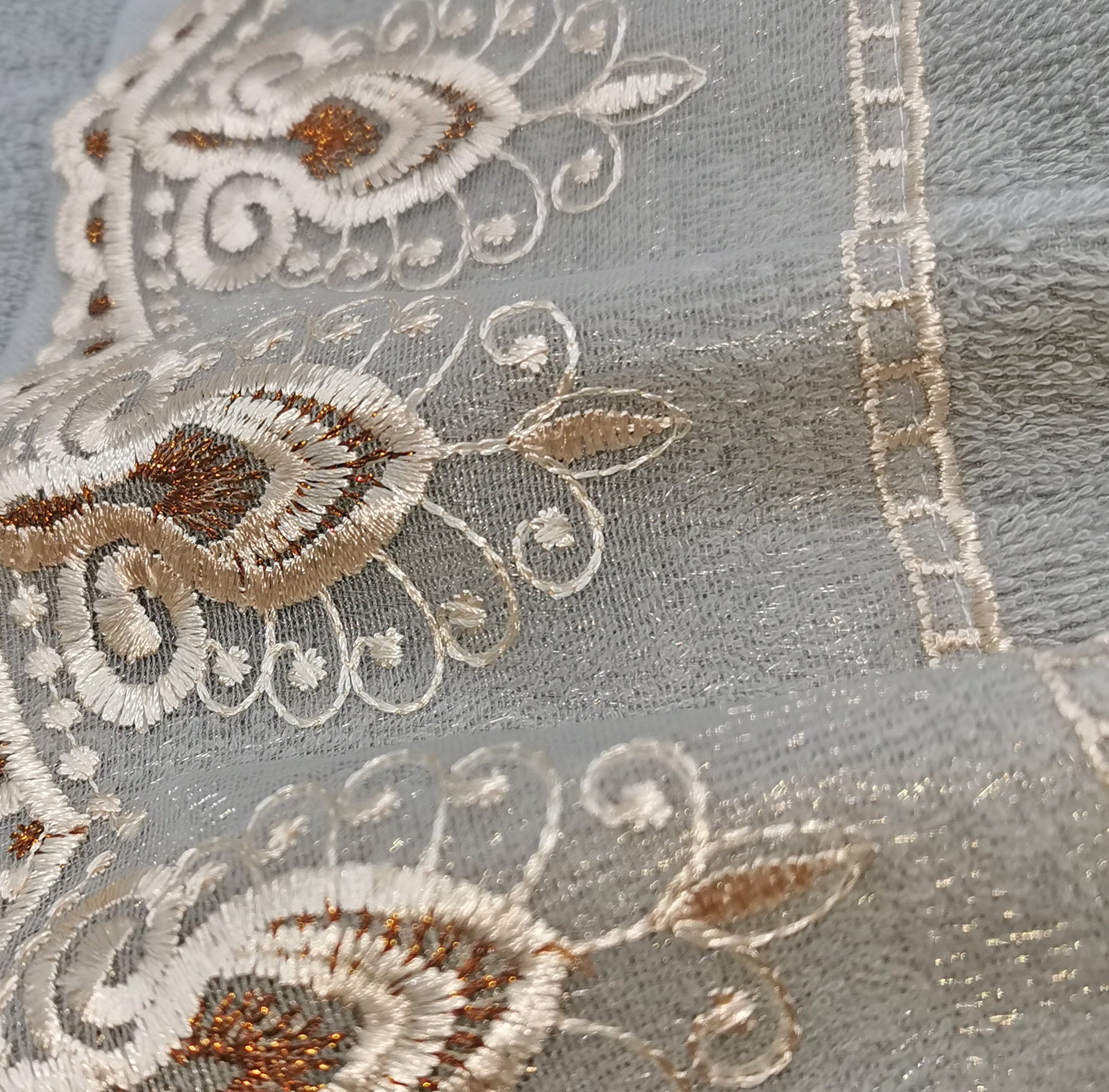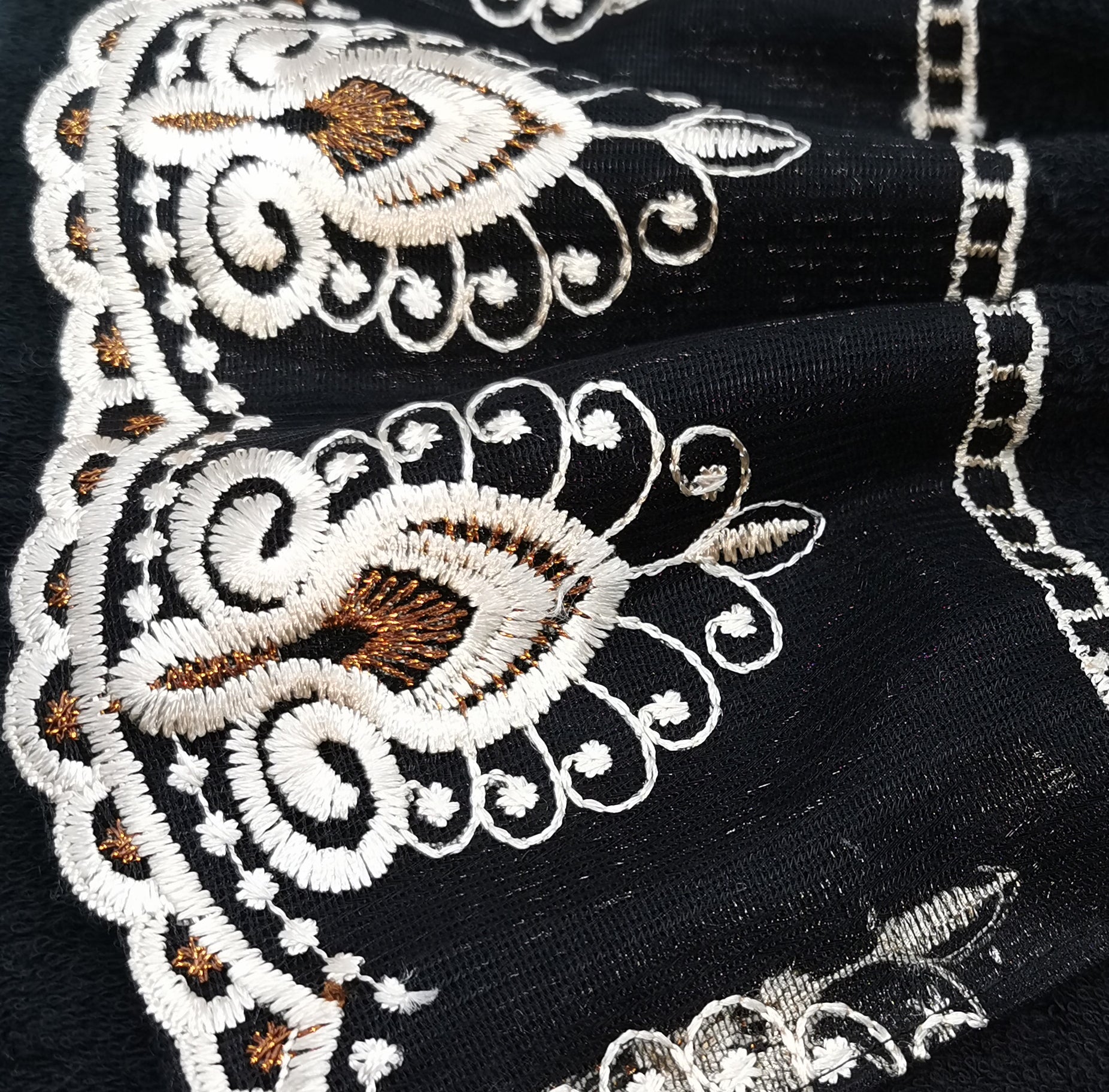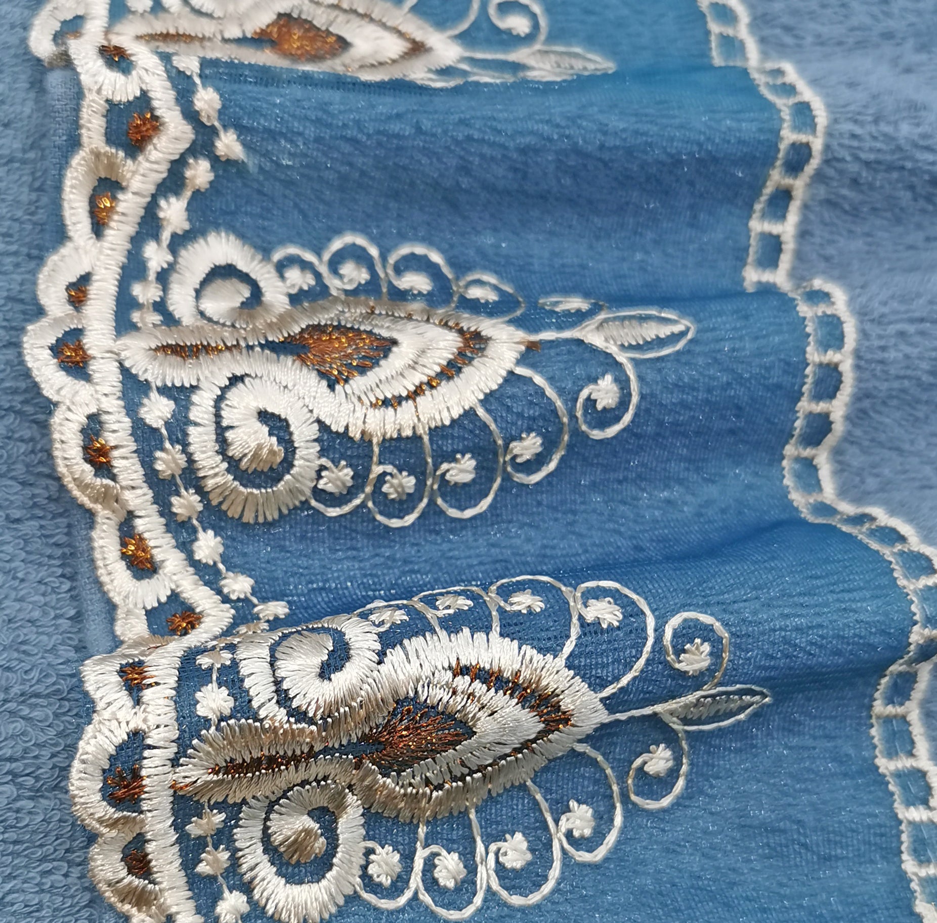 Premium Luxury Decor Soft 100% Cotton Sheer Lace Bathroom Modern 3 Piece Towel Set