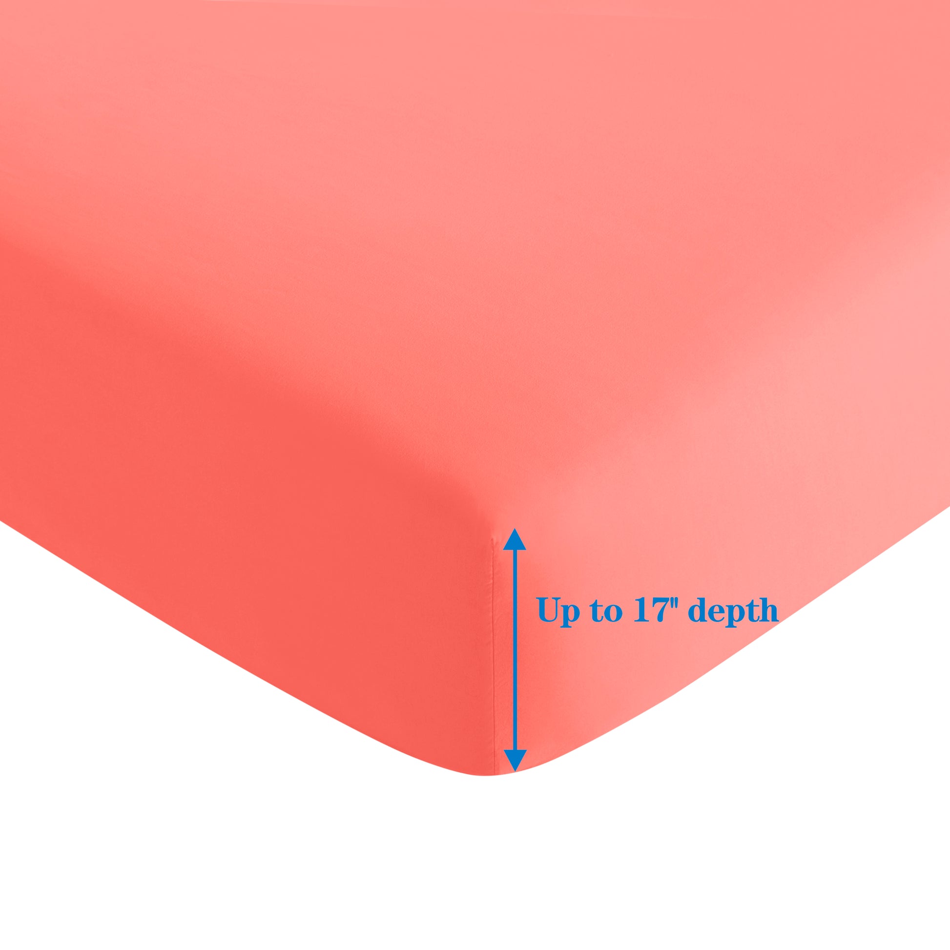 Solid Rayon from Bamboo Soft Silky Deep Pocket Bedding All Season Sheet Set, Coral