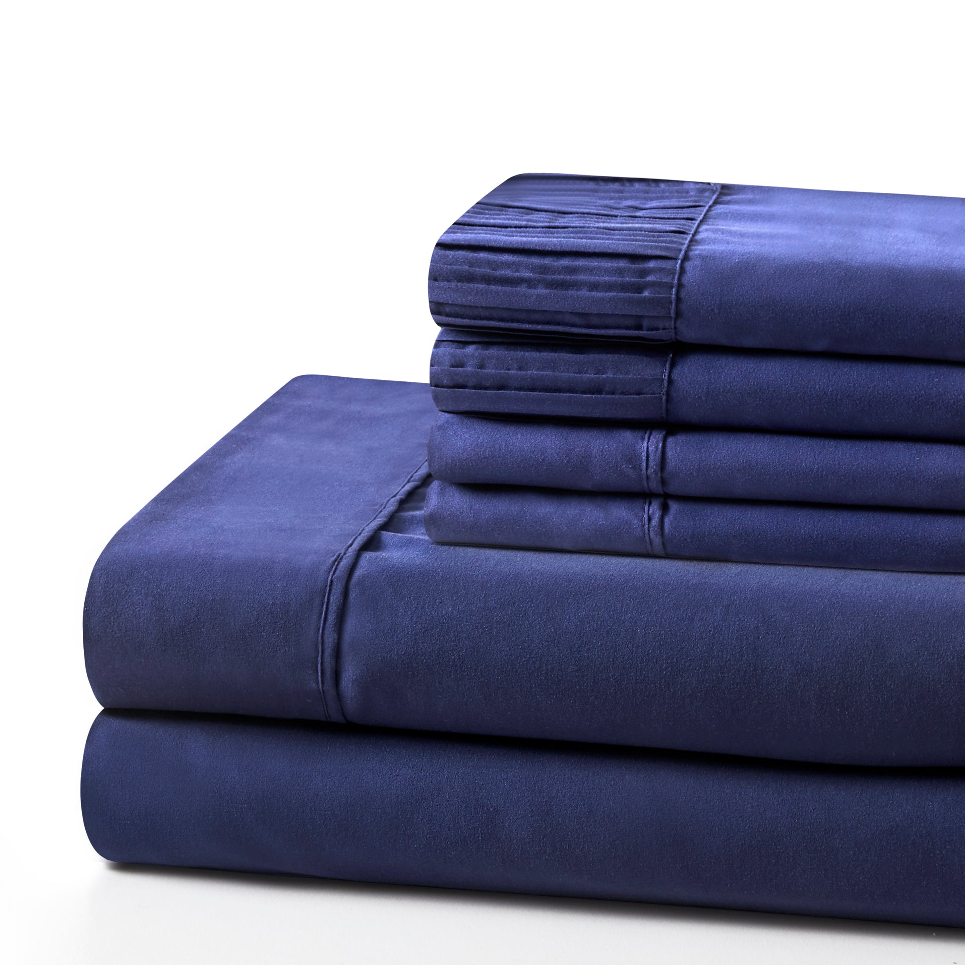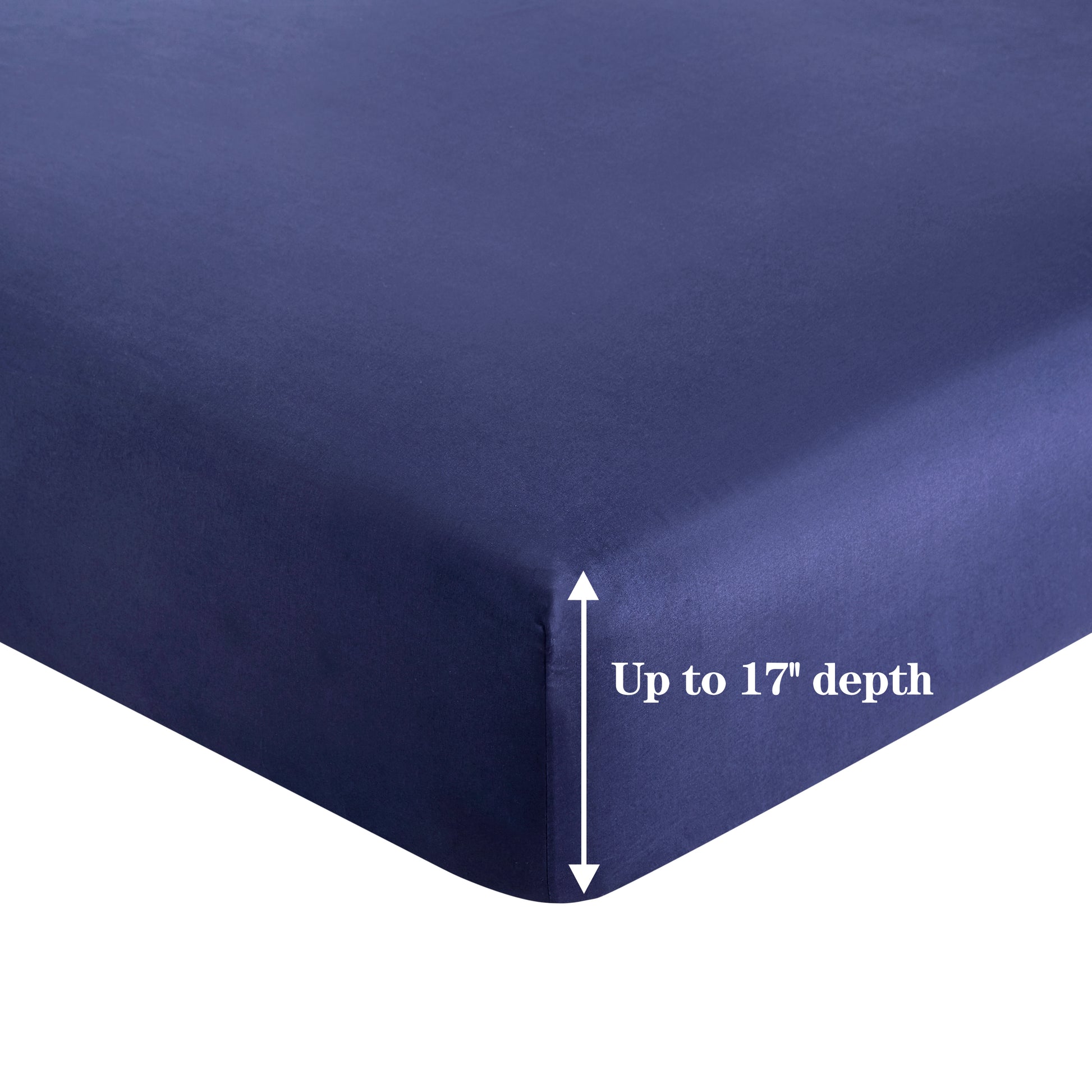 Solid Rayon from Bamboo Soft Silky Deep Pocket Bedding All Season Sheet Set, Navy Blue