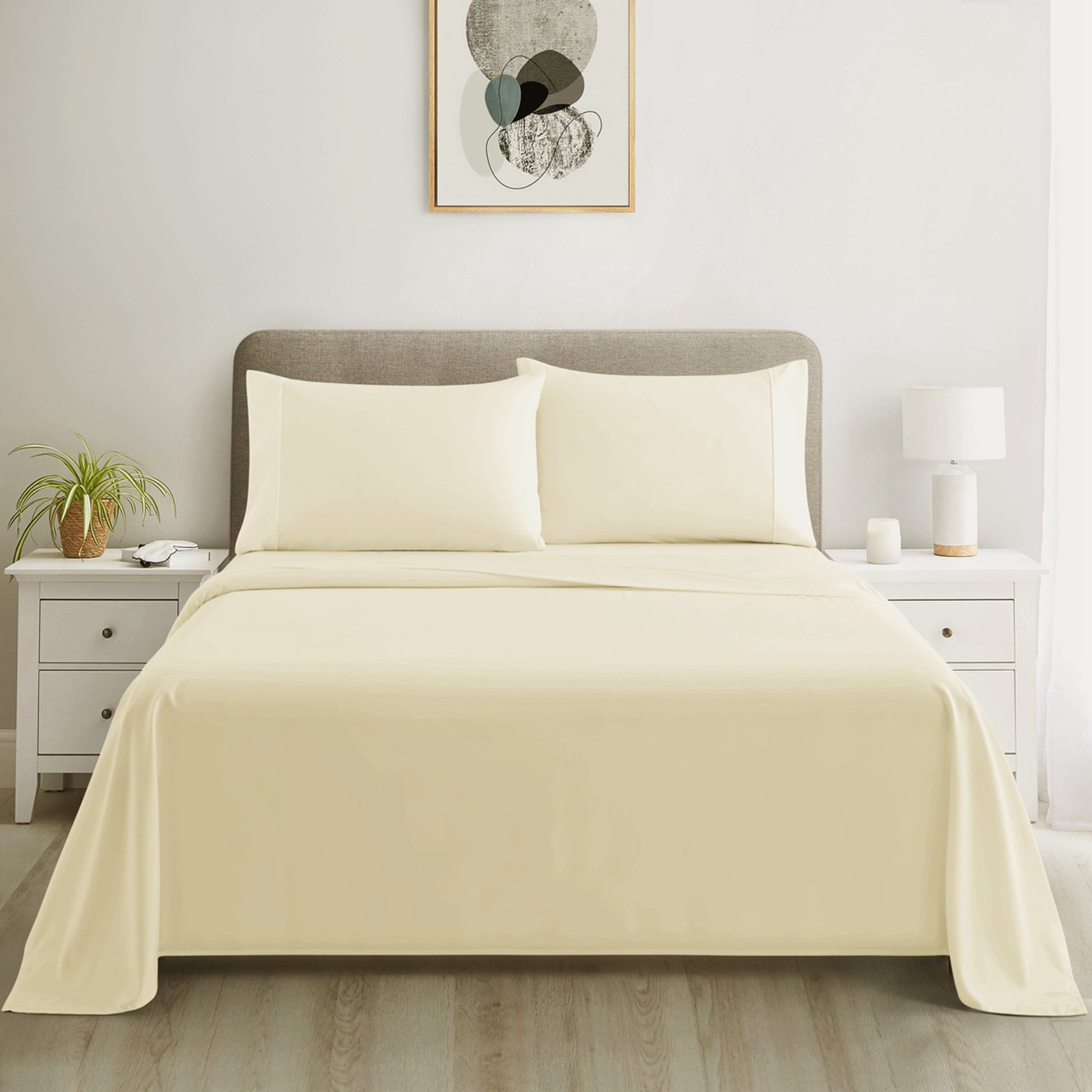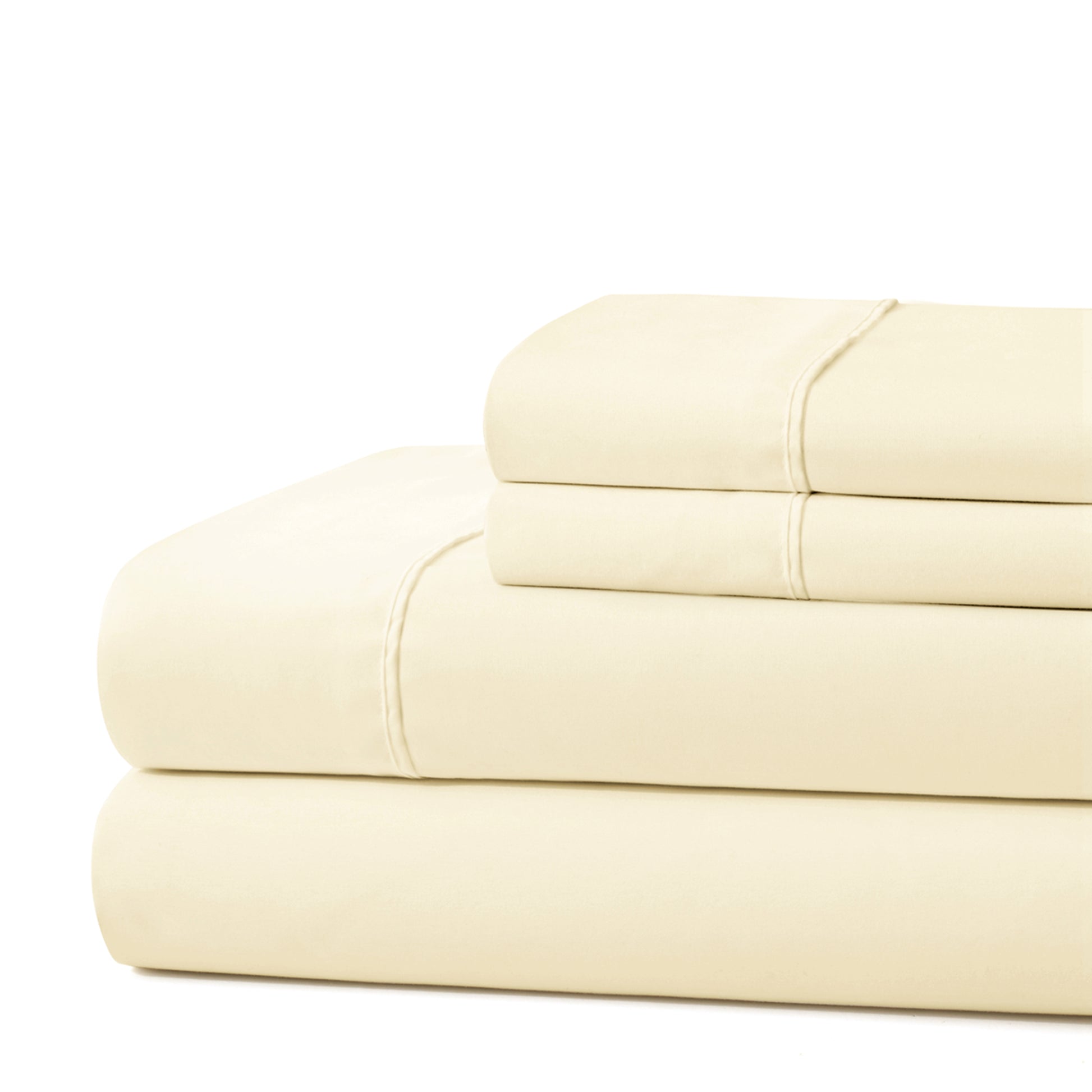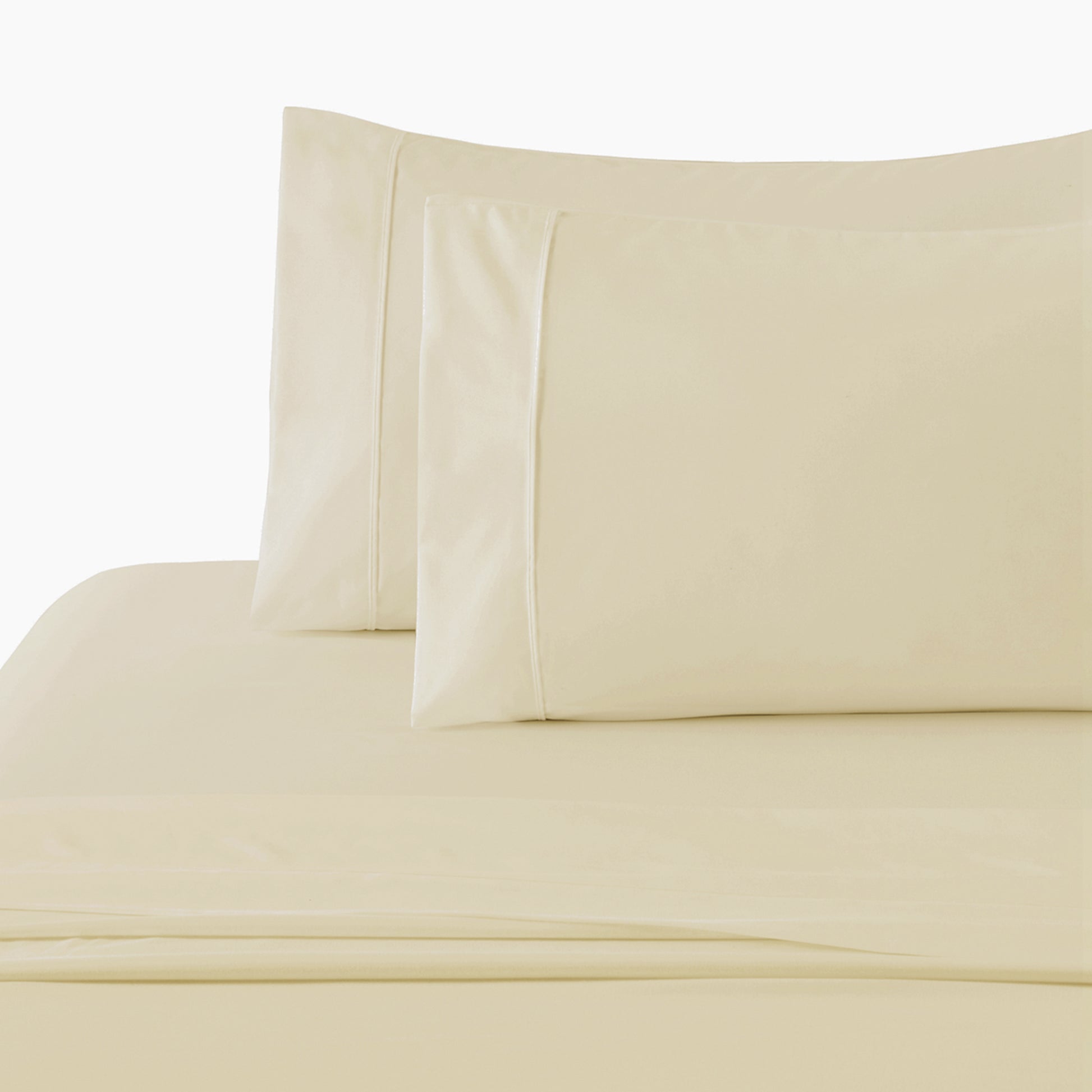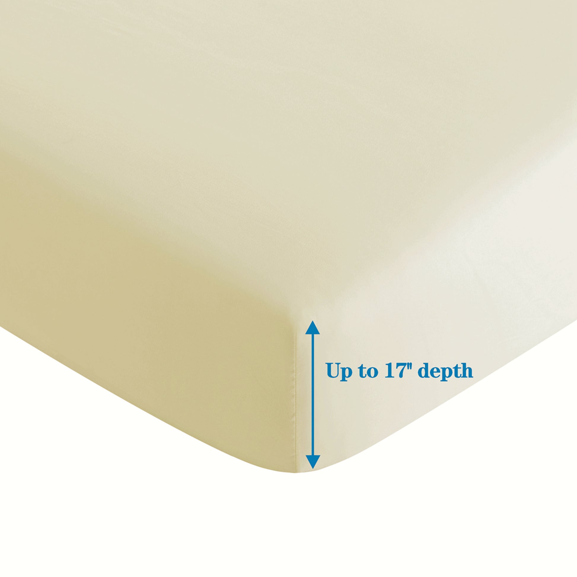 600 Thread Count Cotton Percale Soft Deep Pocket Solid Bedding All Season Sheet Set, Ivory