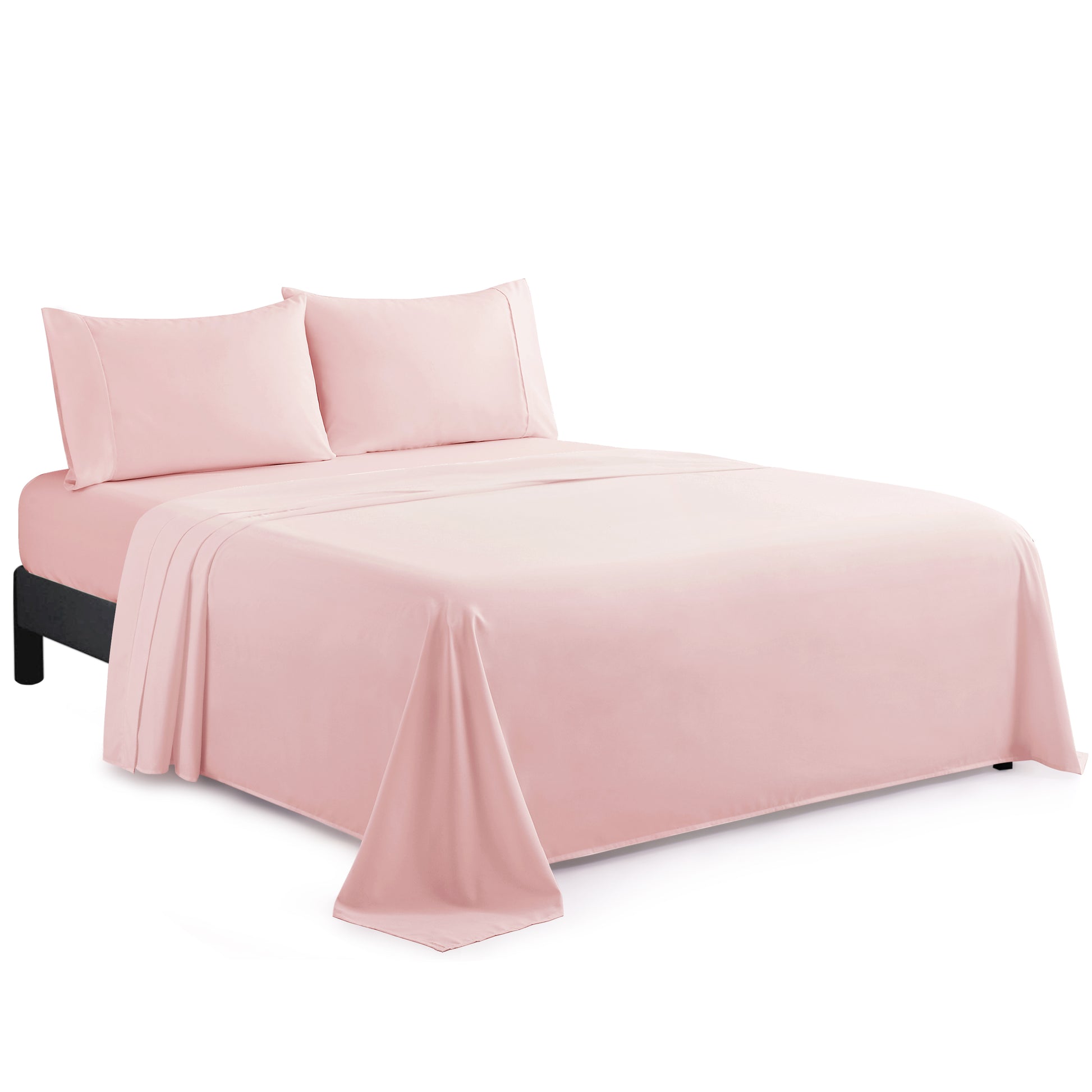 600 Thread Count Cotton Percale Soft Deep Pocket Solid Bedding All Season Sheet Set, Pink