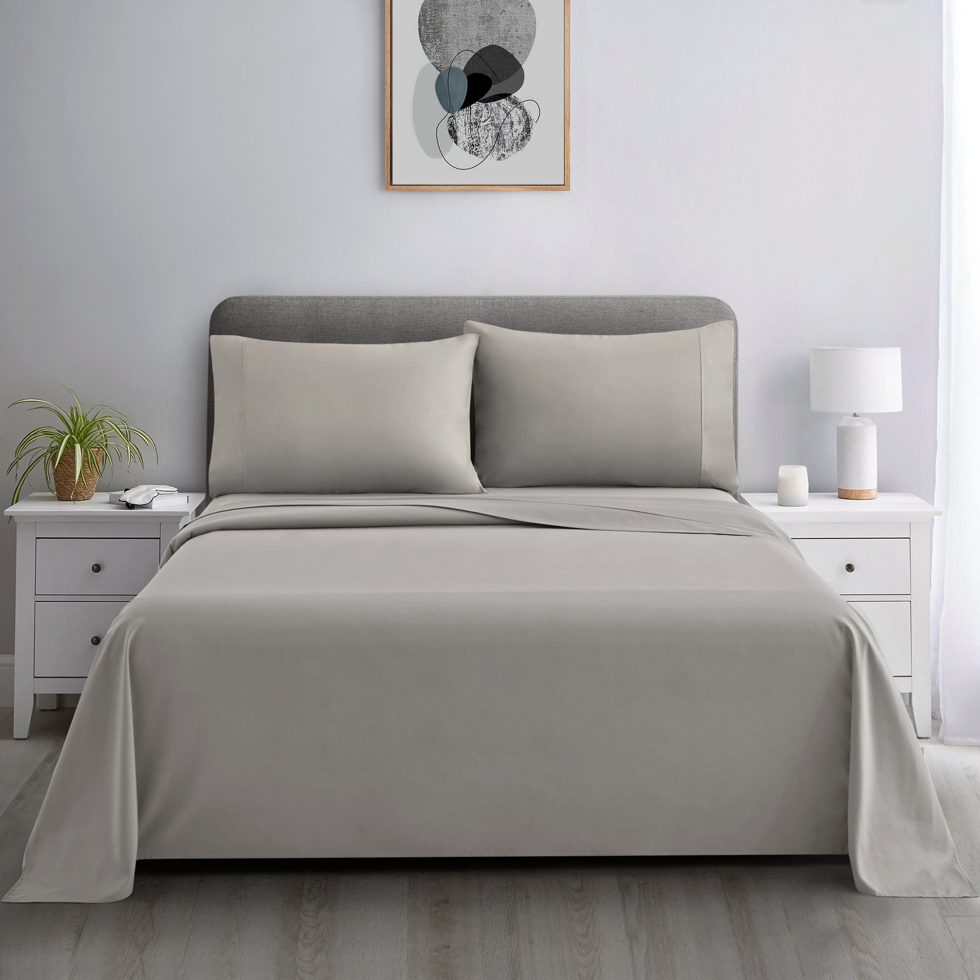 600 Thread Count Cotton Percale Soft Deep Pocket Solid Bedding All Season Sheet Set, Taupe