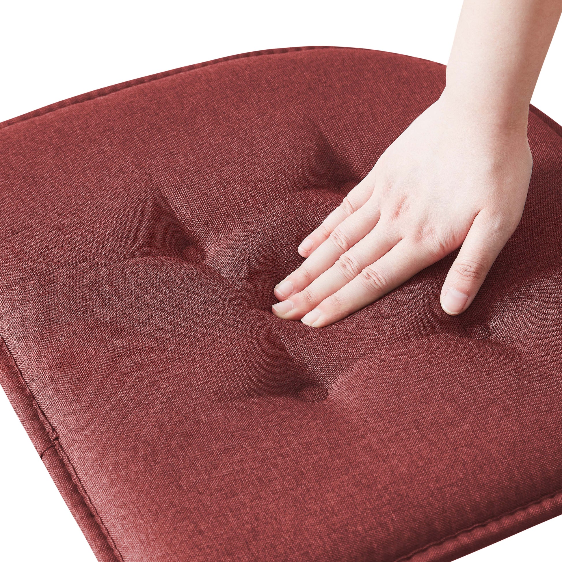 Memory Foam U-Shaped Premium Thick Seat Pad Tufted Nonslip Rubber Back Indoor Kitchen Chair Cushion 17 x 16 Inch, Burgundy